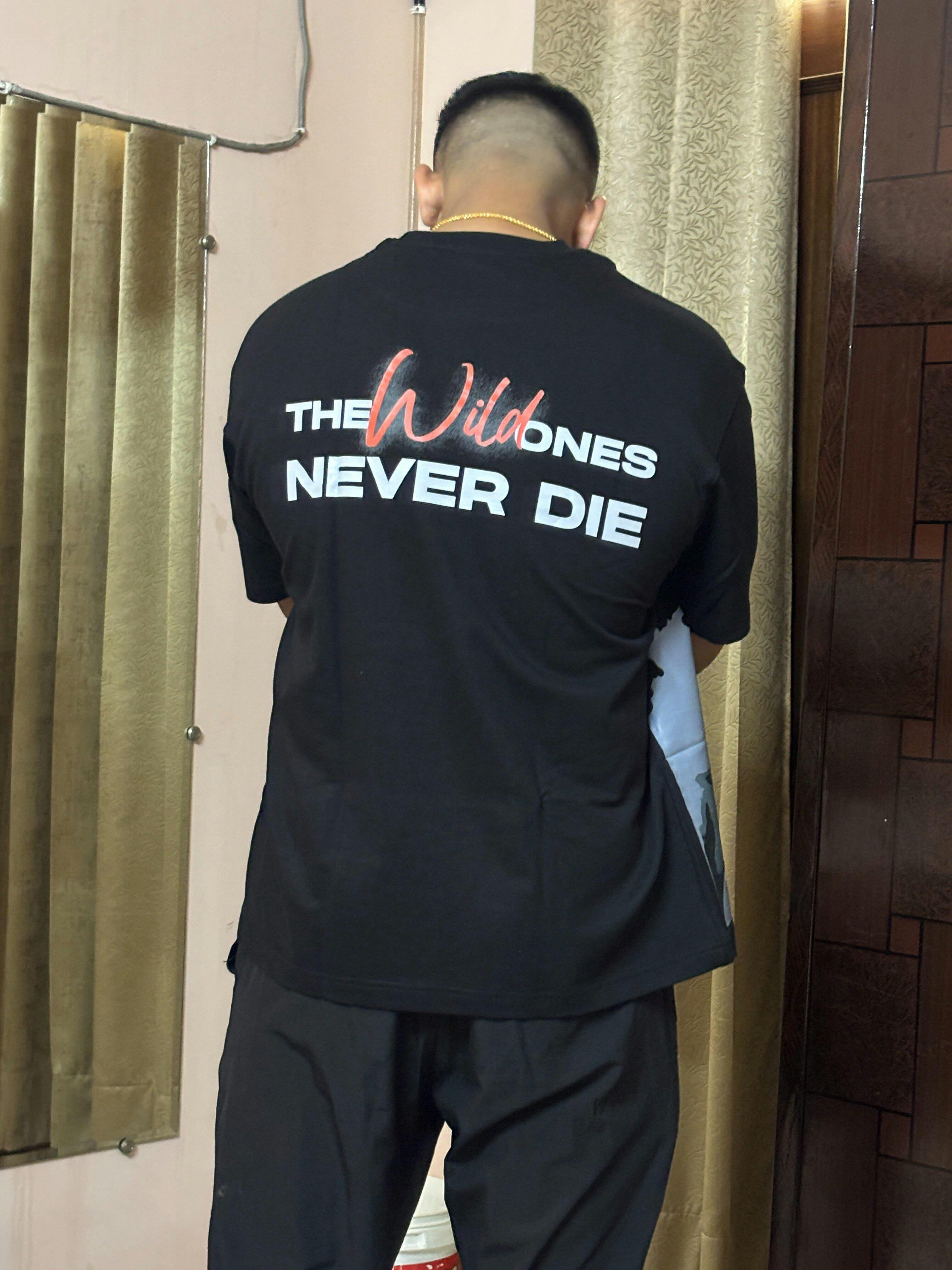 Celebrate unforgettable impact with the bold and timeless “Never Die” Oversized Tee. Featuring a grayscale face graphic and defiant typography, this design speaks volumes — a tribute to legends, voices, and spirits that never fade.